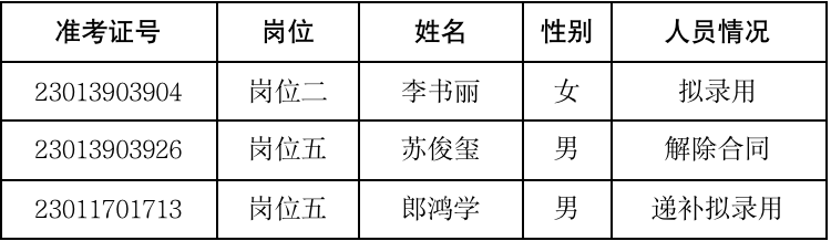 一、拟录用人员名单